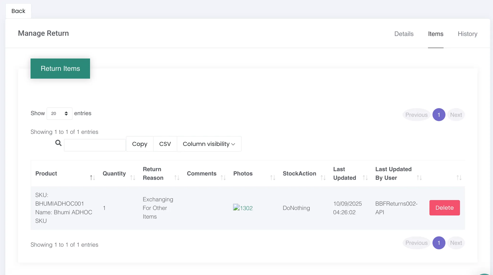 In the event if at least one of the line items requires manual resolution, the entire return request must be completed in PostCo.