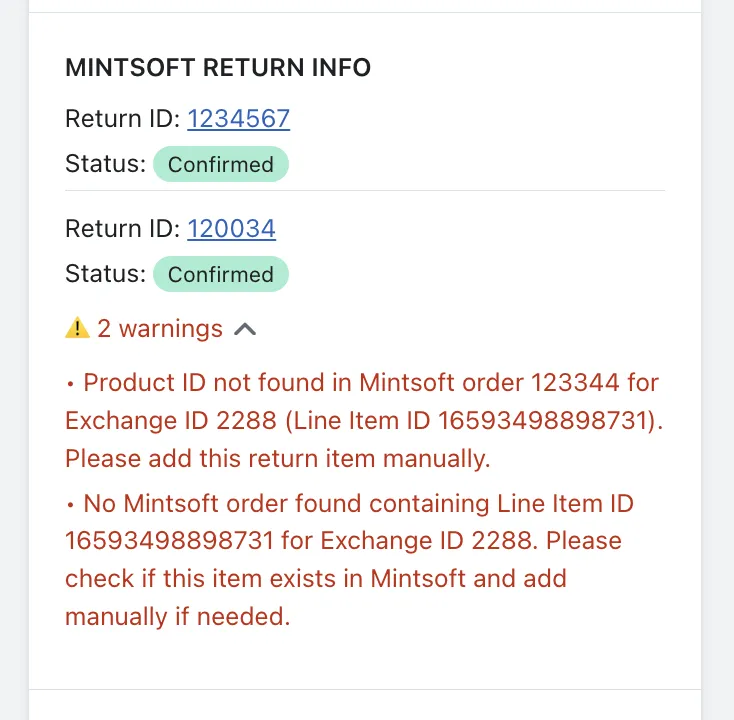 Note: An RMA will not be created in Mintsoft for any unmapped warehouses.