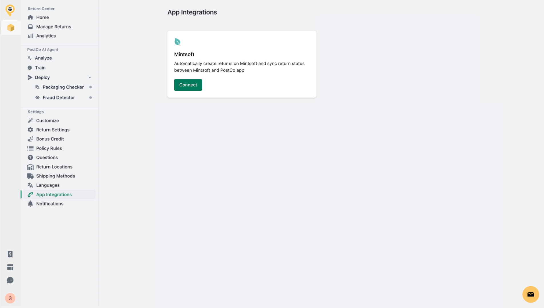 In your PostCo dashboard, head over to App Integrations and look for Mintsoft.