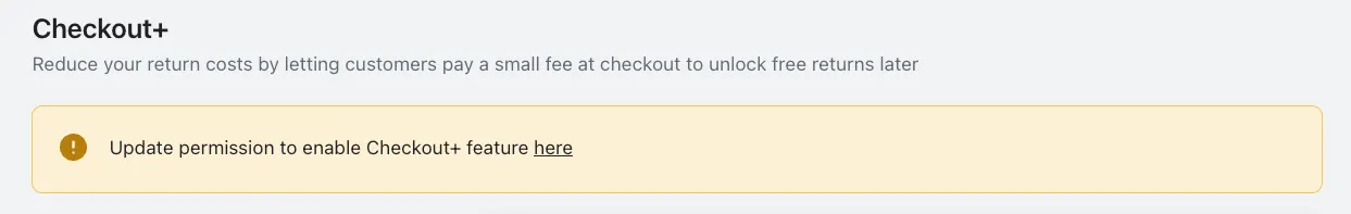 To get started, simply click into 'Settings' in the Checkout+ section on your PostCo Dashboard and you'd be prompted to update your store's permissions.