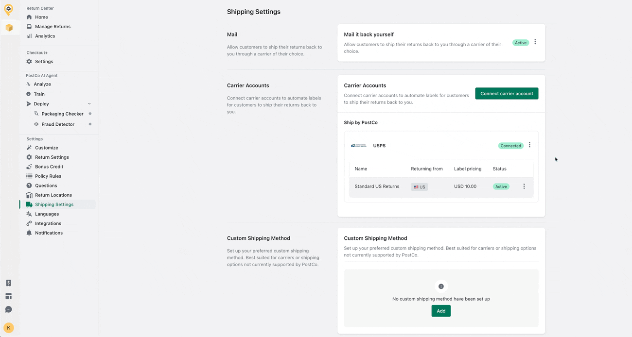 The shipping rates for some carriers (e.g. USPS, FedEx, etc.) vary based on distance and parcel weight. For such carriers, the Rate Calculator helps you estimate the carrier’s actual charges for return shipments based on it weight and returning location.